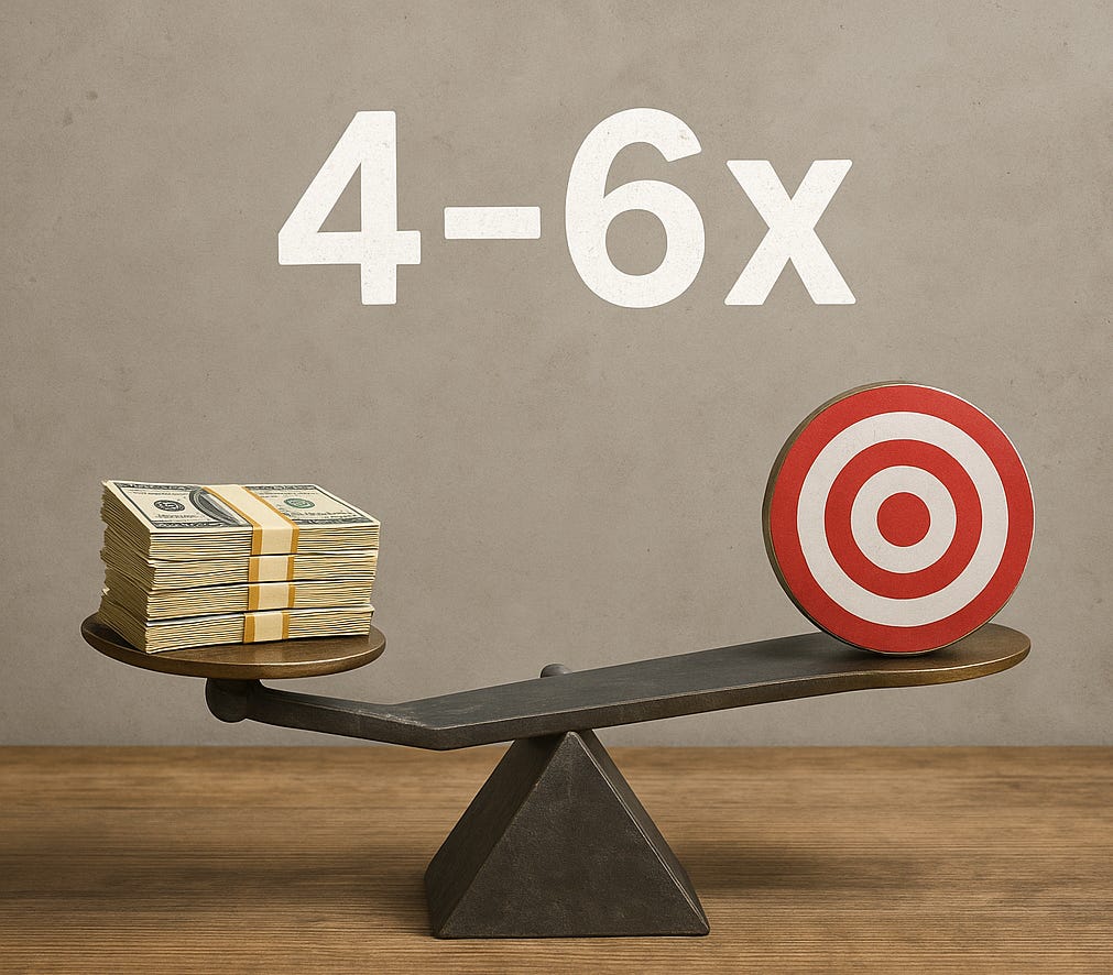 Golden Ratio: Stay in the 4–6× range; <4× means you’re buying revenue, >6× risks underpaying.